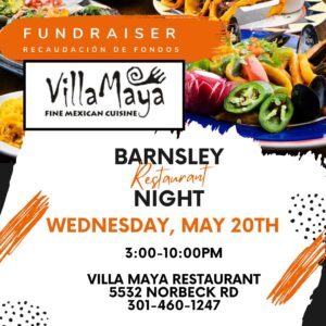 Join us to support our Barnsley PTA and local favorite restaurant Villa Maya! Between 3-10 pm, 20% of all dine-in and carry-out orders will go directly to our school PTA. Download the flyer here. Don’t forget to mention Barnsley!